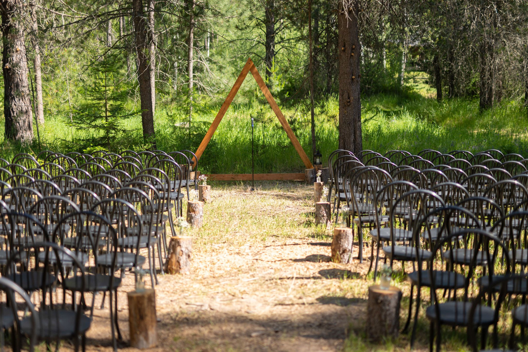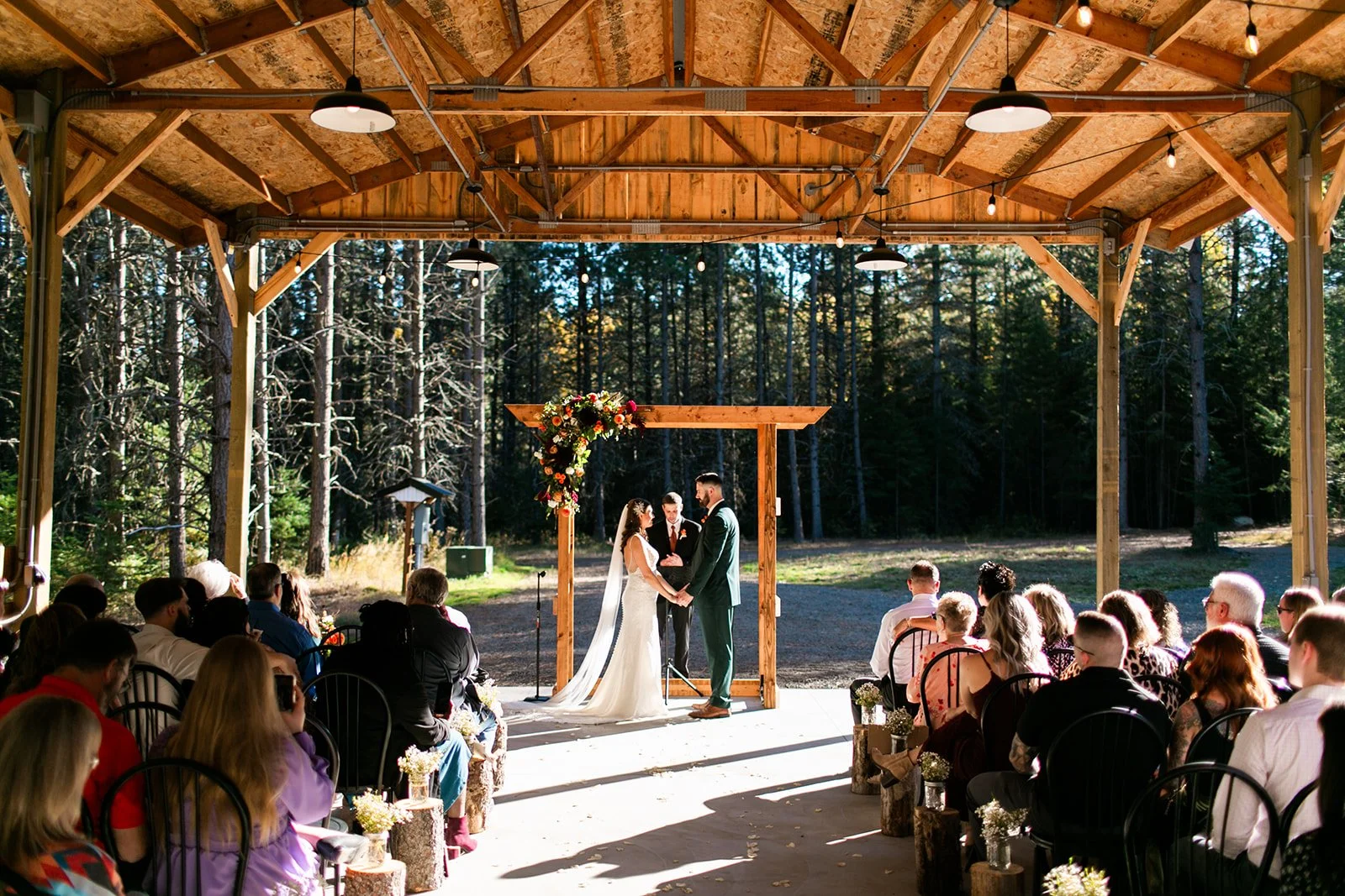 Say your vows beneath a canopy of towering pine trees, surrounded by the serene beauty of the forest. This enchanting outdoor setting offers a natural, romantic atmosphere—perfect for couples who want to embrace the charm of the great outdoors on their special day.